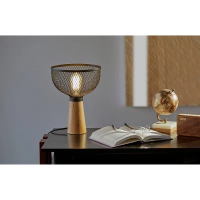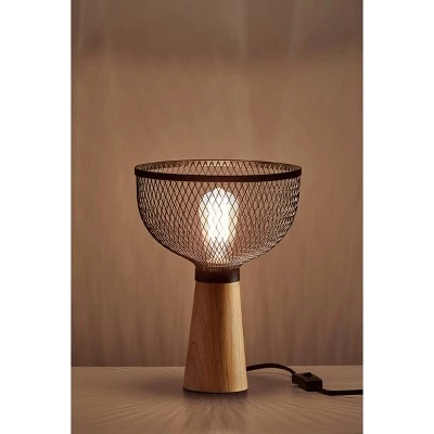 Add a dramatic industrial element to your dining or living space with the Dale Table Lamp. A contemporary black metal mesh shade is paired with a natural rubber wood cylinder base resulting in a modern industrial style with hints of scandinavian influence.This style looks great with all bulb types. Use a vintage edison bulb for soft, mood lighting or an LED bulb for efficient ambient light. At just 11.75″ high, this light is the perfect accent piecethat can fit in small spaces. A simple on/off switch is located on a black fabric covered cord.
