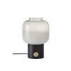 The Lewis Table Lamp is the perfect accent piece for the bedside or living room. A beautiful glass shade has a white color on the bottom and fades into a clear glass on the top. A large, round knob switch on the matte black metal base turns the lamp on and off. With a compact silhouette measuring 12 inches tall, this decorative accent can also be a great addition to a bookcase or shelf. Add a subtle statement and mid-century modern pop to any space you choose.