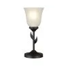 This traditional 12″ uplight exudes elegance with its beautifully crafted rustic leaf design. The matte black, oil rubbed bronze finish pairs nicely with the white opal glass shade and is the perfect addition to any room in your home. Try adding to an entry table for a touch of style to greet your guests.Smart home compatible, this item can also be set up using a smart outlet or switch (sold separately) to easily connect to Alexa, Google Home or any other smart home device.