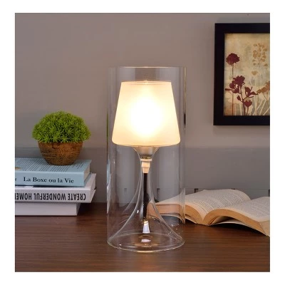 Improve the look and feel of your decor with the refined touch provided by this industrial hurricane downlight accent table lamp. The clear glass shade helps to distinguish this lamp, classifying it as contemporary and refined. The polished glass accents the design with a touch of character, and neutral spirit. The hurricane glass is the centerpiece and provides the design of this table lamp with classic personality. A perfect addition to your urban living space! This accent lamp set features a frosted glass shade to counteract the clear and smooth lines. The lamp encased in the hurricane glass gives this eye-catching piece character with an industrial feel. Bulb: 1 x 40W Type B Incandescent (not included). This item does not ship to Puerto Rico.