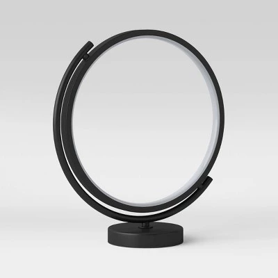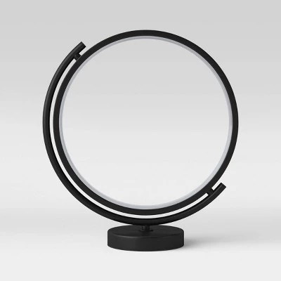 Add accent lighting to your home with the 13.5-Inch Table Lamp (Includes LED Light Bulb) from Project 62™. This freestanding novelty table lamp features a round metal base topped with a metal crescent arc holding the open round ring, which is fixed with an integrated LED bulb along the inner rim that can be positioned up, down or angled to adjust the flow of light. Helping to add a touch of eye-catching beauty with its unique design, this decorative lamp will provide soft glow and is great to be used as statement lighting — from the bookshelf to the fireplace mantel to a side table to the entryway console.