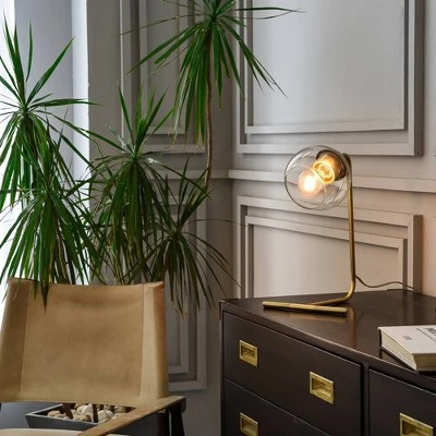 The clear glass shade of the Novogratz x Globe Mason Desk Lamp completes a mid-century modern design and lets you showcase your unique style with the bulb you choose. An A15 vintage Edison bulb will complete the mid-century modern style while an A15 designer bulb will harness a unique look perfect for an office, living room, or den. The matte brass base has a minimalist shape and adds to the design of your room. Decorate with the Novogratz and Globe Electric – lighting made easy.