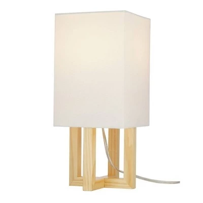 This 15″ farmhouse inspired table lamp features an open geometric faux wood base in a light wash with a white linen rectangular shade. It’s sleek design and compact size make this the perfect addition to any room in your home. Great for apartment living or DIY home remodeling projects.
