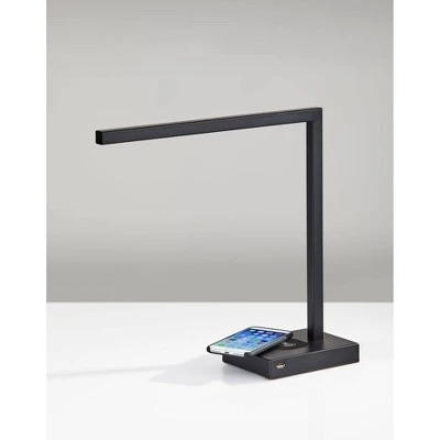 The Aidan AdessoCharge Table Lamp is a contemporary style table lamp that includes a wireless charging pad with Qi inductive charging technology. Many smartphones (list below) have Qi technology built in, so just place your phone on the pad and it will charge right up. No cords, no mess. It’s that easy! All AdessoCharge product is Qi certified by the Wireless Power Consortium. Please visit wirelesspowerconsortium website to see a list of Qi certified products. Our product has been tested and verified to be safe and in compliance with the Qi standard. The AdessoCharge pad supports 5W charging on contact with the charging pad, which gets your phone from 0% to 100% in just 3-4 hours, depending on your phone model. A USB is located on the base and can charge up a second device simultaneously. AdessoCharge is unique in that you can use the AdessoCharge pad, the USB and the light all at the same time with maximum efficiency of all three. A simple touch switch on the base turns the lamp on and off.