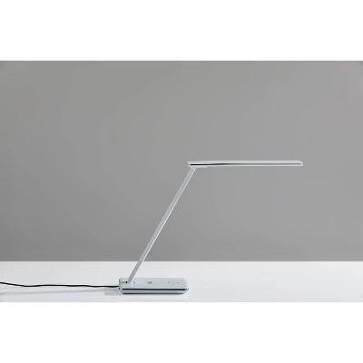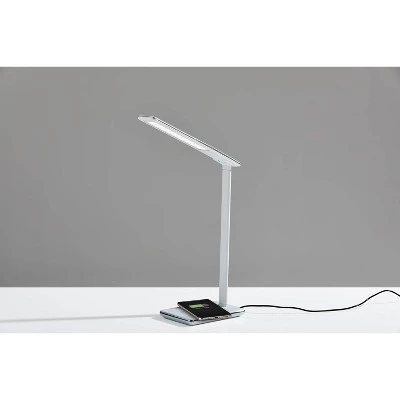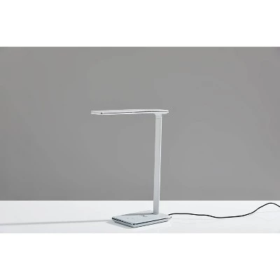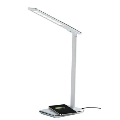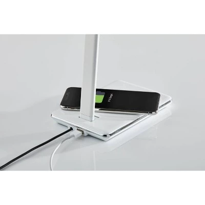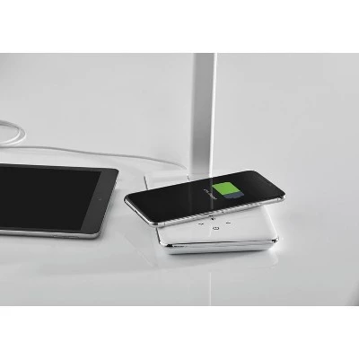 Take your home office to the next level with the Declan LED Wireless Charging Multi-Function desk lamp! With 800 lumens of customizable, flicker free, high powered light, this lamp wil suit all of your needs at every time of the day. A sleek touch switch on the base adjusts the light between 3 different color tempertature modes and 5 different brightness settings. Whether you need a warm, dim night light for reading before bed or bright, white light to wake you up while you work during the day, this lamp has you covered! A sophisticated glossy white finish will add a modern touch to your home or office. In addition, a Qi certified wireless charging pad is conveniently located inside of the base. Many smartphones (list below) have Qi technology built in, so just place your phone on the pad and it will charge right up. No cords, no mess. It’s that easy! All AdessoCharge product is Qi certified by the Wireless Power Consortium. Please visit https://www.wirelesspowerconsortium.com/products/search/ to see a list of Qi certified products. Our product has been tested and verified to be safe and in compliance with the Qi standard. The AdessoCharge pad supports 5W charging on contact with the charging pad, which gets your phone from 0% to 100% in just 3-4 hours, depending on your phone model. A USB is located on the base and can charge up a second device simultaneously.