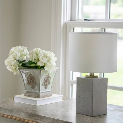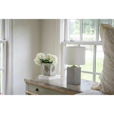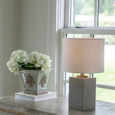 Industrial and luxurious aesthetics lock arms in this fantastic table lamp, the Rance. The robust, rectangular base is crafted in metal but finished with a natural concrete, preserving the imperfections and character of this unique medium. In stark contrast, the round drum shade in made of silk for a sophisticated sheen. Antique brass adds a hint of matte metallic to the finishing touches of this show stopping lighting piece.