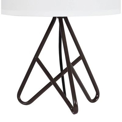 Create a stylish retro personality on a desk or end table with this Watson Espresso metal tripod table lamp. A stylish blend of form and finish create captivating allure in this elegant table lamp. With a studio feel, its primitive tripod base is constructed from espresso finish metal, perfectly coordinating with its clean white drum cotton/linen fabric shade. This tripod metal table lamp transcends decor motifs from retro, contemporary or rustic. Polished espresso accents bring depth and warmth to a bedroom nightstand or living room side table. Uno Fitter Inner White Cotton/Linen Drum Shade measures 11.75″ L x 11.75″ W x 8.10″ H. Table Body & Base measures 7″ DIA x 12″ H. Requires a standard 120v (Type A, E26) bulb 100 Watts (not included) or 23 Watts CFL or LED Bulb Compatible.