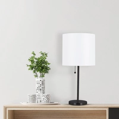 Bring contemporary brilliance home. Fashioned in metal with a black paint finish and white fabric shade, our Stick Table Lamp delivers a clean aesthetic. Its shade easily mounts with a threaded ring and it features a convenient On/Off pull chain. Displaying this fixture will revitalize your living room, family room, bedroom, or office. Customers often place this lamp on nightstands, bedside tables, and small dressers. Updating the light fixtures in your home is the most effective way to accomplish an alluring, yet simple, DIY remodel. Producing captivating fixtures for nearly five decades, Catalina Lighting extends a 1-year limited warranty against defects in materials and workmanship.