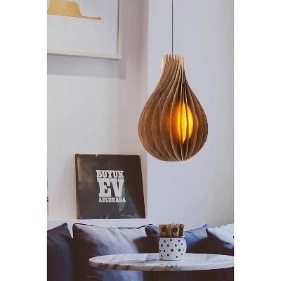 Bring a modern, organic look to your interiors with this pendant light that resembles an Opel vase. 19.75″ in Acorus Wood Ceiling Pendant Lamp is diffused through the petals of curved walnut wood finish veneers to create a soft glow. The look is neatly tied together with a circular holder on the top and bottom of the lamp. This Lamp blends in keeping attention and focused on the pendant beneath. A beautiful wood veneers brings wooden sheen embellishes its eye-catching layout. Utilize its presence to accent an existing contemporary living space. This stylish, modern, minimalist chandelier that is perfect above a dining table or in a living room, bedroom. It is also suitable for a lighting project in a restaurants, bars and hotels. It is designed to bring a cozy and ambient atmosphere. A perfect DIY Project dream. When you make items yourself, you can choose this lamp project that suit your tastes, create them in your choice of colors/textures, and then use them to your heart’s content. You will also be able to transform this Pendant as a Table Lamp, Instruction is included as how to make it but you will need to get a Table Lamp Fixture in your local Hardware Store.