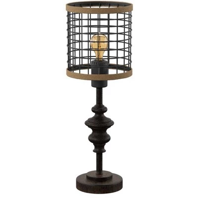 Accent your home décor with this black table lamp from the Signature Collection by StyleCraft Home Collection. This industrial inspired lamp comes in a black finish and a caged wire shade with burlap trim. This piece exemplifies superior product design and great styling at an unbeatable price. This modern table lamp is UL listed in compliance with the nationally recognized safety standards. Suitable for residential use in a dry location. This will pair well with mid-century modern styling and is sure to be a conversation piece.