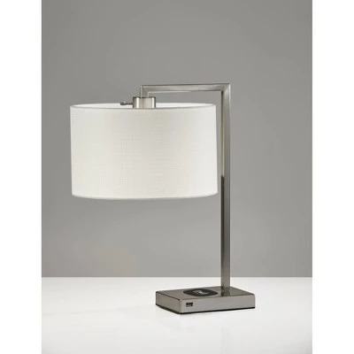 The Austin AdessoCharge Table Lamp is a modern styled table lamp that includes a wireless charging pad with Qi inductive charging technology. Many smartphones (list below) have Qi technology built in, so just place your phone on the pad and it will charge right up. No cords, no mess. It’s that easy! All AdessoCharge product is Qi certified by the Wireless Power Consortium. Please visit wirelesspowerconsortium website to see a list of Qi certified products. Our product has been tested and verified to be safe and in compliance with the Qi standard. The AdessoCharge pad supports 5W charging on contact with the charging pad, which gets your phone from 0% to 100% in just 3-4 hours, depending on your phone model. A USB is located on the base and can charge up a second device simultaneously. AdessoCharge is unique in that you can use the AdessoCharge pad, the USB and the light all at the same time with maximum efficiency of all three. A beautiful texture on the white fabric shade reveals itself when lit.