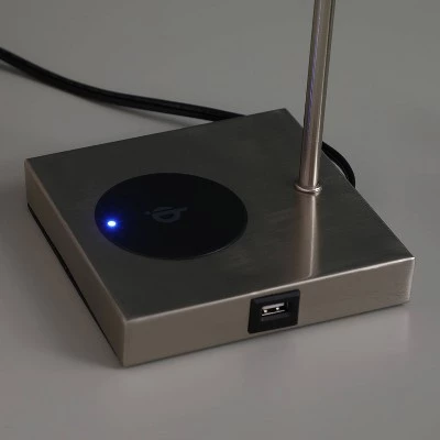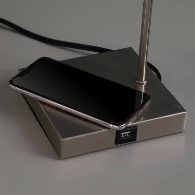 Modern Ashton Square Table lamp feature a Wireless Charging Pad with Qi Technology and a USB port for convenient charging. With Qi integrated into many smartphones, charging is easier than ever—no charging blocks or cords required. Design a workspace or reading nook that’s primed for productivity, you can charge up without cords or clutter. An elegant & practical solution: This lamp does not have the glare of overhead lights or exposed bulbs as its neutral linen shade softens the light giving your room a warm ambient glow. The unique modern style and size of this lamp makes it the perfect bedside table, office lamp, or living room side table lamp. Contemporary design and features a metal construction with a top w/ a Blue Green Textured Square Drum shade. Convenient Pull Chain: With the stylish pull chain, you can turn ON/OFF with the pull chain. No need to find the switch on the cord when you are going to sleep. Super convenient for your bedroom. The charging port and pad function regardless of whether the lamp is on or off. Add this table lamps to your bedroom, office or living room for a dash of delightful symmetry and visual allure.