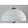A traditional silhouette meets modern design in the Lexington table lamp. The dark walnut rubber wood body holds an alabaster frosted glass dome shade and is accented with a satin steel base, cap and finial. Two pull chain switches, each with on/off functionality allow for a dim or bright light setting. This lamp has a black cord and is smart outlet compatible. This lamp measures 22.5″ and blends simplicity with a luxury look. Bulbs are not included.
