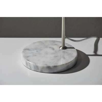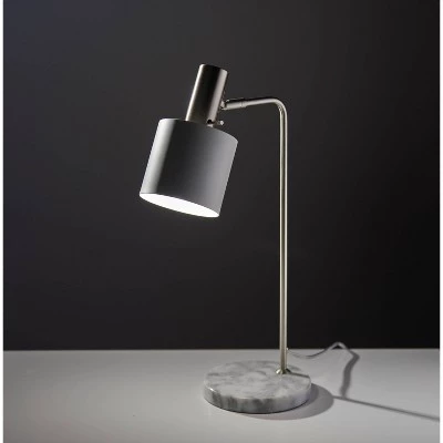 An essential addition to sleek, modern decor, the Emmett Desk Lamp is both functional and stylish. A small footprint allows this piece to fit neatly on the night stand or desk without taking up too much space. An adjustable shade allows for light to be directed where it is needed. A brushed steel and matte white finish is accented by an elegant white marble base.