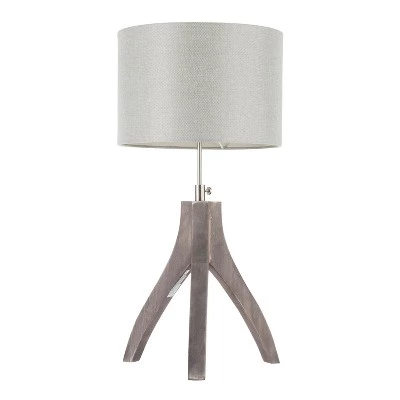 - Unique tripod design with fabric shade