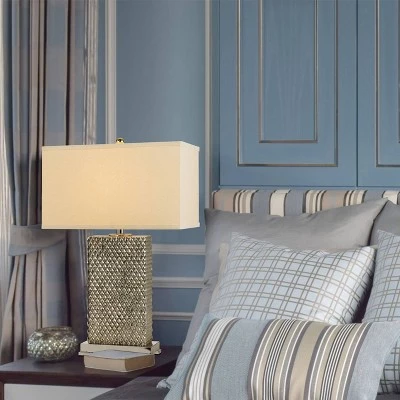 Cal Lighting makes this Contemporary styled Ceramic Table Lamp with Rectangular Shade. The Argent finish looks great with the beige shade. These lamps each use one 150 watt 3-way bulb which gives you the option to adjust the light level to best suit your needs. (Bulbs are not included. Imagine how this lamp will be a great addition to your living room, family room, bedroom, or office.