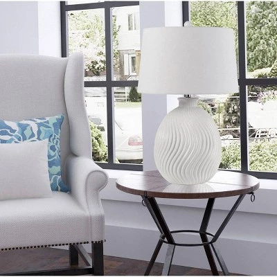 Cal Lighting makes this Transitional Milky White ceramic table lamp comes with a Drum fabric shade. This lamp uses one 150 watt 3-way bulb which gives you the option to adjust the light level to best suit your needs. (Bulb is not included.) One or more of these 26.8″ tall lamps will look great in your office, bedroom, living room, or family room.