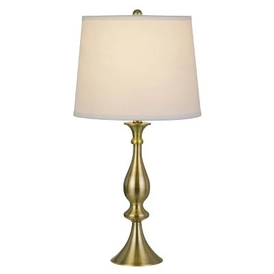 Cal Lighting makes this pair of Transitional styled 100W Metal table lamps with taper drum hardback linen shade The Antique Brass finish creates a great look combined with the Off-White shade. This pair of lamps will be a great addition to your living room, family room, office or bedroom. These lamps use an On/Off socket switch. The bulbs are not included. These lamps and shades ship in one carton.