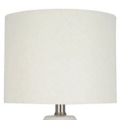 - White faux silk drum bell shade: 10″L x 14″W x 11″H.