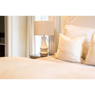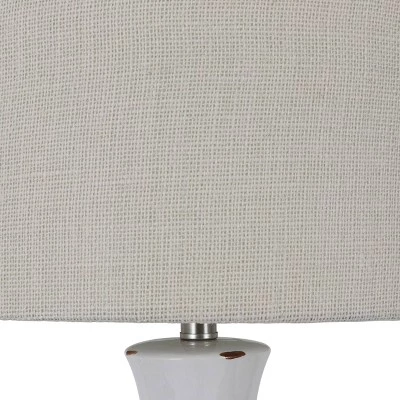 Enjoy the versatility of the Callie 30″ Ceramic Table Lamp as its sculpted design and shape makes decorating a joy! The deeply molded lamp base features a distressed effect on the outer edges and the neck of the lamp body, creating the perfect timeworn look. The hardback drum shade features clean lines, adding modern appeal to this accent lamp. The fabric shade also adds a layer of rich texture to your side table or night stand. Constructed of resin and measures: 30 x 19 x 19″.