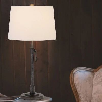 Cal Lighting makes this metal table lamp that adjusts from 26″-30″ tall. The candlestick design in Antique Silver finish looks great with the taper drum hardback off white shade. This table lamp uses one 150 Watt 3-way bulb (not included). Add this Transitional styled lamp to your Livingroom, dining room, family room, bedroom, or office.