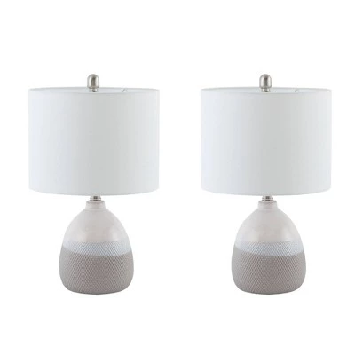 Update your space with the sleek style of the Driggs Table Lamp. The base is made from ceramic with a painted gray and white finish for a sleek gradient look. The drum shaped white shade softly filters the light, while also beautifully complementing the striking look. This table lamp is easy to incorporate into your existing space and perfect for accenting any living room or bedroom. One Type A light bulb is needed. Comes with a 2-year warranty.