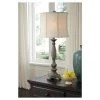 Age of beauty. Sporting a lovely patina distressed effect, this table lamp proves that some things do get better with age. Structured concave shade adds fabulous flair. Distressed Gray Finished Table Lamp. Softback Shade. 3-Way Switch. Type A Bulb – 150 Watts Max or 25 Watts Max CFL. Signature Design by Ashley is a registered trademark of Ashley Furniture Industries, Inc.