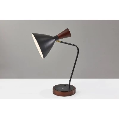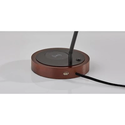 Stay connected with the Arlo AdessoCharge Wireless Charging Desk Lamp. With a Qi wireless charging pad and a USB port built into the base, you can charge up multiple devices at once! The Arlo Collection channels mid-century modern styling with an accentuated oversized shade silhouette. Walnut wood accents create a warm contrast to a matte black finish. An convenient on/off rocker switch is located on the base. Bulb is not included.