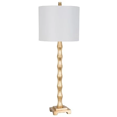 The Bamboo Buffet Table Lamp from Opalhouseâ„¢ is the perfect amount of glitz. The artistic, bamboo-inspired table lamp comes in a beautiful gold-leaf finish with a white fabric drum lampshade. Place it on a console, buffet or anywhere else extra light is needed for a unique addition to your decor.