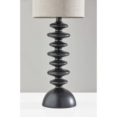 Bring elegant, contemporary style to your space with the unique silhouette of the Beatrice table lamp. At 28.5″ tall, this lamp is the perfect addition to nightstands or accent tables. It features a 6″ dome-shaped base to ensure stability. The black matte finish continues up the distinctive stem, which includes seven round designs of varying sizes. The lamp is topped by a tall 13″ tall and 9″ diameter taupe textured fabric drum shade to softly diffuse light from a 100W bulb (not included). Operated by a rotary socket switch to easily turn the lamp on or off, it is also powered by a 5′ black cord. Complete your décor with the shorter Beatrice table lamp measuring 22.5″ tall and the Beatrice floor lamp.