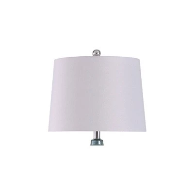 Accent your home décor with this Bella Ribbed Glass table lamp from the Signature Collection by StyleCraft Home Collection. This attractive table lamp presents glam style and exquisite mixed materials. The glass and steel frame features a bold blue finish, which offers an effective contrast to the off-white shade. A combination of polyester and linen gives the diffuser strength and elegance. This transitional piece brings classic style and impressive design to bedrooms, living rooms, offices and foyers. It will pair well with transitional styling. Regardless if you put it in the bedroom or family room, this table lamp stands out. Suitable for residential use in a dry location. This modern table lamp is UL listed in compliance with the nationally recognized safety standards.