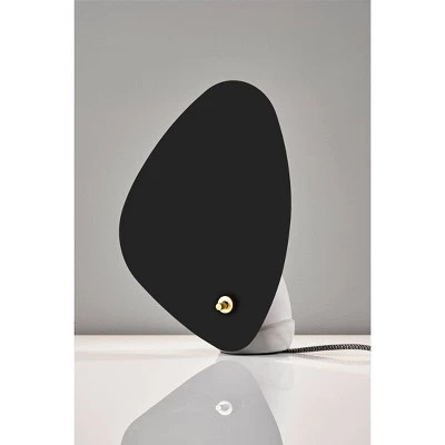 Add a surprising and unique accent to your console table, bookshelf or bedside with the Bonnie Table Lantern. An irregular shaped black metal shade is set atop a natural concrete base. This lamp sits in front of the wall to reflect the light for a soft, ambient glow. Turn the lamp on and off with an industrial brass metal switch. A black and white fabric cord adds modern flare to the design. Bulb is not included.