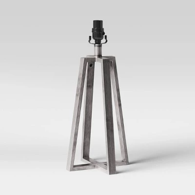Brighten up any room with the striking look of the Linear Lamp Base from Threshold™™. Showing off an antique metal finish perfect for complementing various styles, this large table lamp base includes a three-way rotary switch that allows you to keep the light at a high, medium or low setting. The bold lines and angled corners bring a modern style that easily blends in with your existing decor, whether you keep the look subtle with a white lampshade or you dress this lamp base up with a bold printed shade.