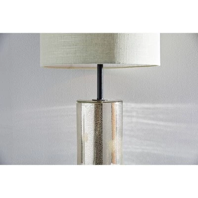 Add some glam to your space with the Cassandra Tall Table Lamp. A short, wide drum shade made with a high quality textured fabric in sand color emits a beautiful warm glow. A crackled mercury glass with matte black accents makes up the rest of the lamp. This lamp is perfect for all spaces in need of a light and style upgrade.Turn the lamp on and off with a convenient switch on the socket. All Adesso lighting product is either UL or ETL listed, meaning that it has been tested and approved to meet the government-regulated safety standards for the USA. Bulb is not included.