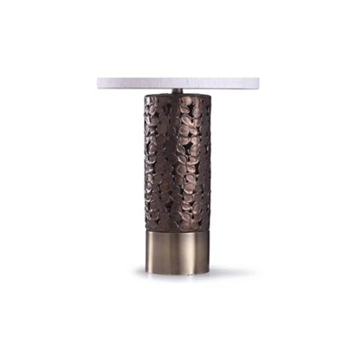 Accent your home décor with this Chesham Floral Design table lamp from the Signature Collection by StyleCraft Home Collection. Mixed materials create an impressive industrial look in this attractive table lamp. The body features ceramic and steel, with a brass base giving way to a long bronze mental section. The off-white shade consists of linen and polyester and adds to the lamp’s symmetry with its cylindrical form. This elegant piece brings fashionable design to bedrooms, living rooms and dining rooms. Regardless if you put it in the bedroom or family room, this table lamp stands out. Suitable for residential use in a dry location. This modern table lamp is UL listed in compliance with the nationally recognized safety standards.