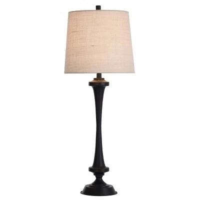Accent your home décor with this table lamp from the Signature Collection by StyleCraft Home Collection. A traditional style table lamp that needs no extra frills or fuss. A slender steel frame infuses the strong base with an elegant quality. The oatmeal shade consists of polyester and linen, providing a graceful contrast to the black metal finish and emphasizing the fixture’s classic look. A timeless piece, this table lamp fits in any room from the office to the foyer. Regardless if you put it in the bedroom or family room, this table lamp stands out. Suitable for residential use in a dry location. This modern table lamp is UL listed in compliance with the nationally recognized safety standards.