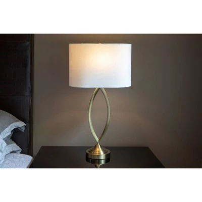 Add a sculptural element to your side table with our Sculpted Metal Table Lamp. This sleek, modern crafted lamp comes in multiple finishes and features an open design for a look that will keep your side table looking open and airy. A classic and polished finish is accented by a White Linen Oval hardback shade. Constructed of Steel. Required one (1) 100 watt bulb, not included. Measures 15x15x27.5″