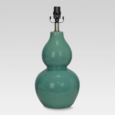 Bring some sweet color — and soft lighting — to any space with the Double Gourd Ceramic Large Lamp Base from Threshold™. This aqua green ceramic lamp base has a unique shape that brings eye-catching style whether you add it to a side table in the den or place it in the entryway. Just add a simple lampshade to let it stand out on its own.