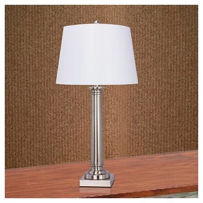 Fangio Lighting’s #1491 30.5 inch Metal Table Lamp will bring a touch of elite sophistication into any room. Add a sense of style that will easily compliment your decor with the chic Brushed Steel finish! This item can easily become a conversation piece! The smooth lines and traditional feel help to make this an instant favorite. This light comes complete with a designer linen shade in a decor friendly color and an easy to use on/off rotary switch. Whether you strive for the simple beauty of modern decor, the fluid charm of transitional styles or a simple transitional look, this lamp is the one for you. Lamp is UL-Listed and CSA Approved.