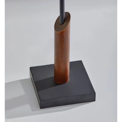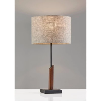 Crafted from walnut wood and black metals, the Ethan Table Lamp is a versatile mid-century modern style that looks good in any space. A natural textured fabric shade balances out the look. With a 5.5″ square base, this lamp has a compact profile to sit wherever light is needed. A black fabric covered cord comes out elegantly from the base. Bulb is not included.