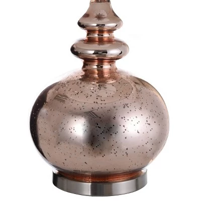 Spotlight your home décor with this Gemvara Table Lamp Rose Gold from the Signature Collection by StyleCraft Home Collection. This glass lamp comes in a rose gold finish with a steel platform base. This piece exemplifies superior product design and great styling with a beige designer print fabric shade with a silver finish finial topper. This will pair well with bohemian and luxe/glam styling and is sure to be a conversation piece. Regardless if you put it in the bedroom or family room, this lamp stands out. Suitable for residential use in a dry location. This table lamp is UL listed in compliance with the nationally recognized safety standards.