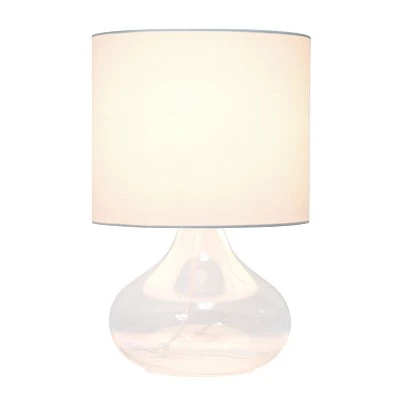Illuminate your living space with this simple yet stylish glass table lamp. The clear glass raindrop shaped base and white fabric drum shade is the perfect blend of charm to give your home a contemporary and modern upgrade. Perfect for living rooms, bedrooms, kids and teens, college dorms, apartments, nurseries, or offices.