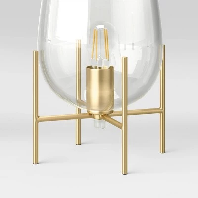 Brighten any table with the glam shine and style of the Glass Uplight Lamp (Includes LED Light Bulb) from Project 62™. Founded atop a four legged “X” base in a brass gold finish, this decorative table lamp has a candlestick holder-like base featuring an LED bulb, and it’s covered with an upright clear glass lampshade to add to the visual appeal. Keep it on your dining room credenza, entryway console or living room center table for a stunning accent.