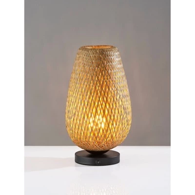 Bring beach-bungalow ambiance and a warm glow to your home with the 16.25″ tall Hugo table lantern. It features a 6.25″ diameter round metal base in black finish supporting the tall, tulip-shaped shade. With an open-weave natural bamboo shade distilling the light of a 40W bulb, this lantern creates a relaxed and natural focal point to any tabletop. Operated by a discrete rocker switch located on the base to easily turn it on or off, the lantern also features a 6′ black cord. Complete your space’s look with the coordinating Hugo floor lamp and pendant lighting.