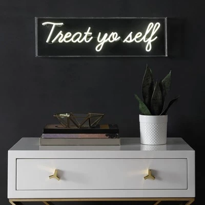 Bright neon makes a whimsical addition to your bookshelf or gallery wall. Use our Treat Yourself sign in the kitchen, or as inspiring bathroom wall art. Convenient, low-voltage USB power is perfect for a bedroom or dorm room.