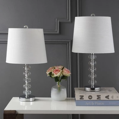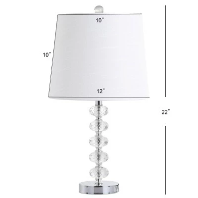 Modern yet timeless, the faceted crystal orbs on the base of this 22″ high table lamp will brighten any corner with style and light. With its smaller scale, you’ll make a statement by adding one on either side of a console or buffet for extra light, or use one to give your desk a designer touch with this updated take on a classic style. Crafted of a lead crystal base and finial, it’s finished with a bright white drum shade.