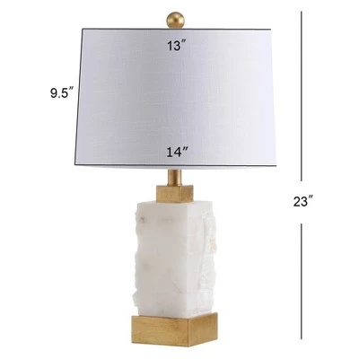 - Raw hewn alabaster evokes natural elegance in this artful table lamp