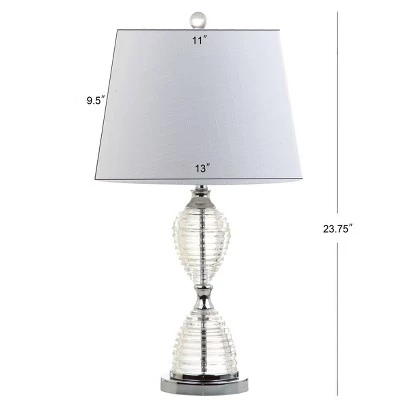 The unique texture and hourglass shape of this crystal table lamp give a classic category a modern update. Up top, a white linen tapered drum shade softens the glow from the bulb and is held in place by a crystal finial to complete the look. An elegant and chic accent for any empty tabletop!