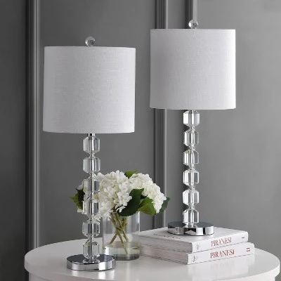 This Hollywood Regency-inspired lamp adds low-key glamour to your bedroom or living room; or use two on a dining room console. The clean, simple lines and drum shade have mid-century modern flair, finished with upscale touches like the crystal finial and silk-wrapped cord. Includes an LED bulb.