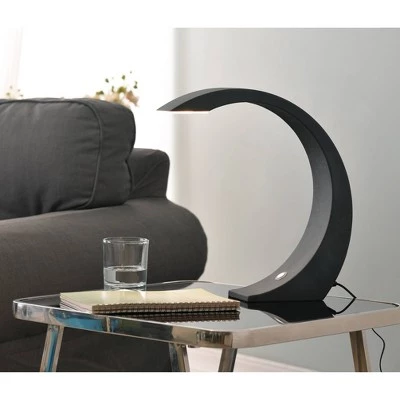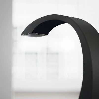 Inspired by futuristic science fiction movies, this LED desk lamp encompasses the style, tone, and sleekness of a modern art piece created in the distant future. Standing – or better yet, elegantly arching at 13 inches in height, this contemporary styled desk lamp finished in matte black carries a much sought after dark and mysterious vibe. With futuristic style comes futuristic technology – this desk lamp is powered by three (3) cool and vivid 1-Watt LED bulbs, these energy efficient beacons of light will remain bright and crisp through 20 years of use. Adding an extra layer of modern chic is the metallic dimmer switch found at the base of this contemporary desk lamp – while the lamp is in the off position, a glowing blue halo glows around the dimmer button…presenting an irresistible urge to turn on this sculpted art inspired desk lamp.